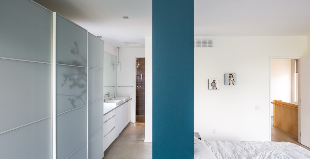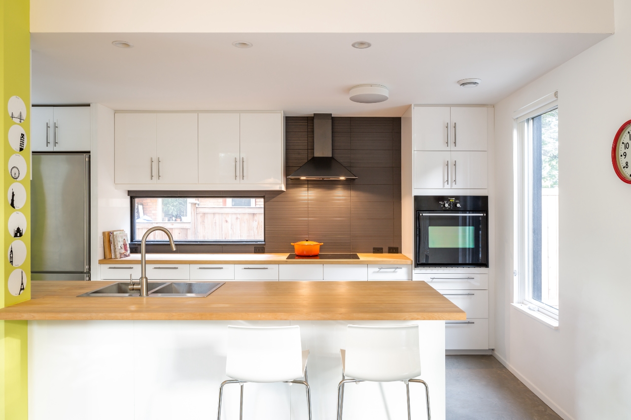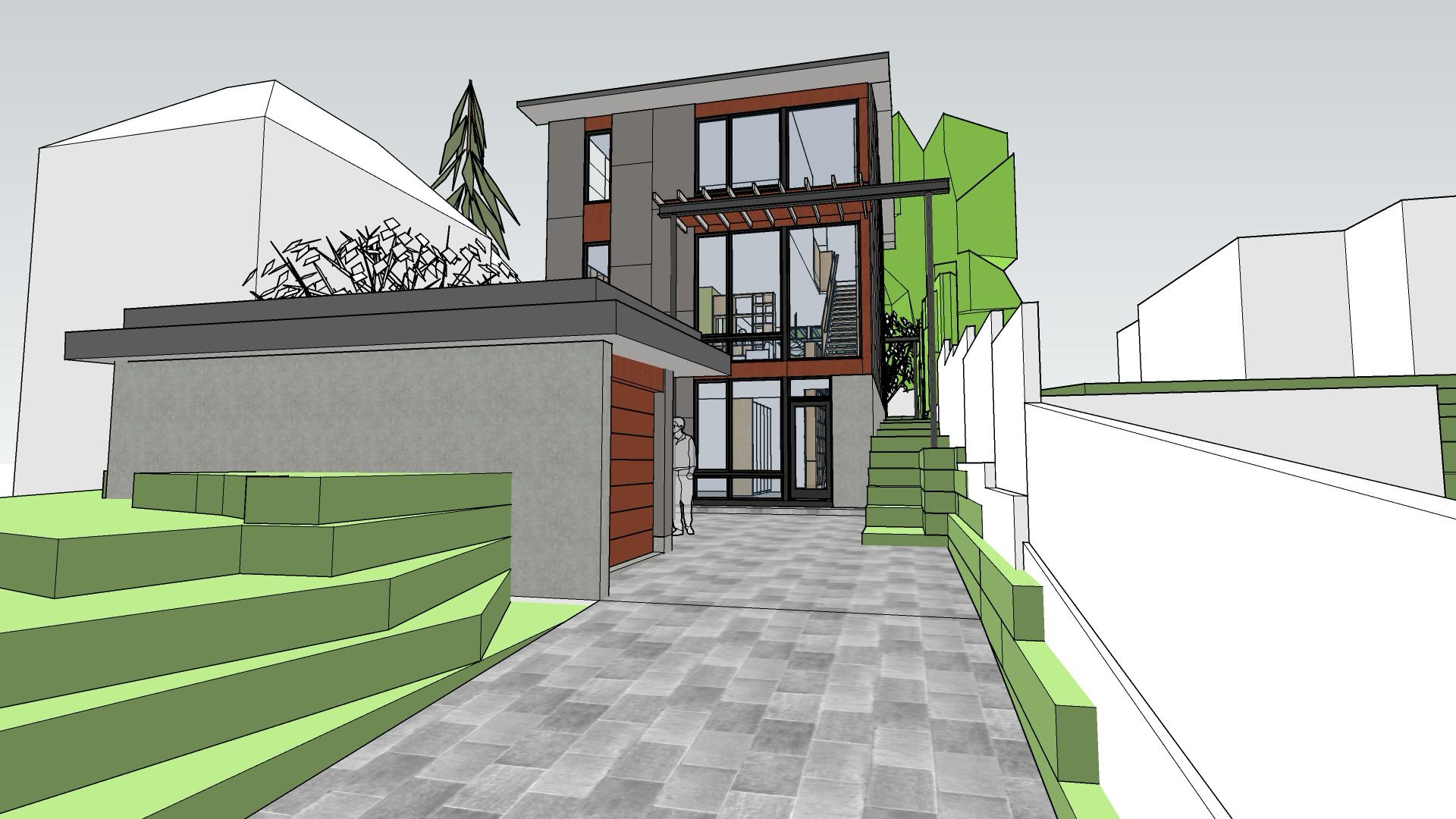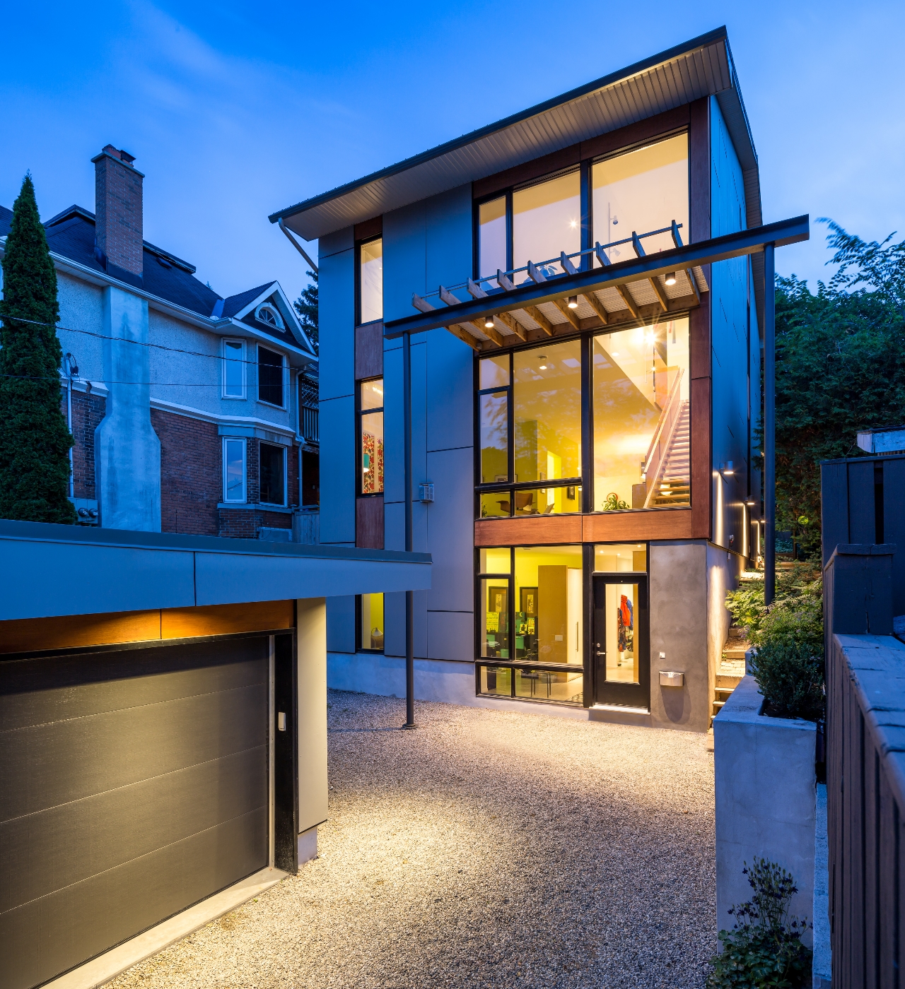 The new home was designed to carve into the site to provide a courtyard with garage and entry at street level, and access to the back yard from the second storey. We opened the interior space with high ceilings and large windows. The large windows and radiant floor heating required an in-house energy analysis. The highly detailed interior fitup included a ‘treasure box’ storage system throughout the house to manage the display and storage of the family’s precious and beautiful possessions.